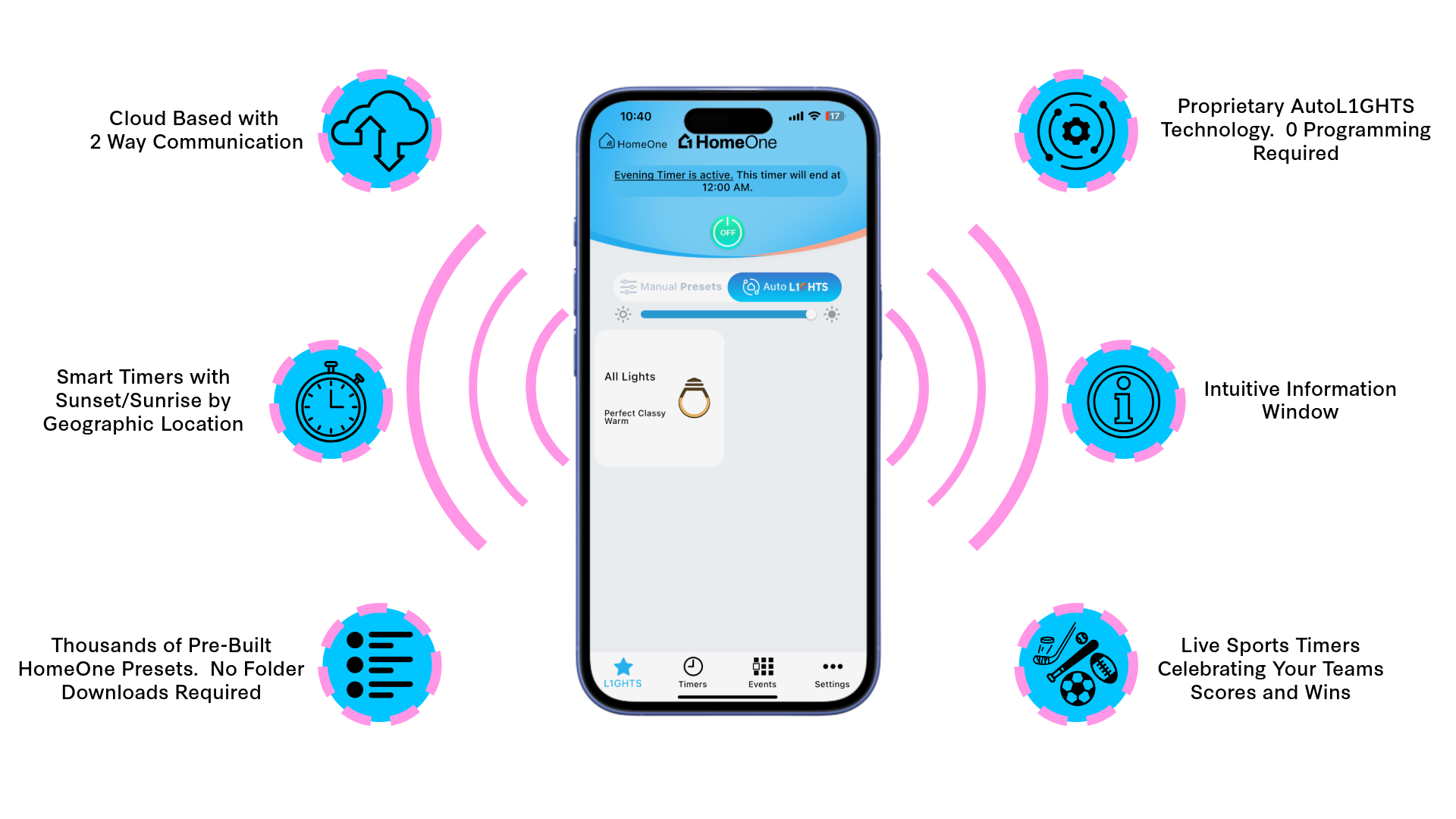 Sit back, relax, and let HomeOne’s automated systems keep you in the loop while our crews get your lighting setup all taken care of.